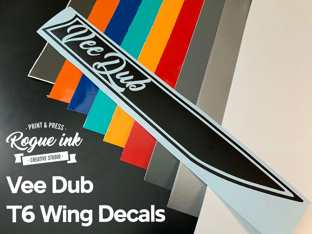 Pair of custom Vee Dub VW T6 Transporter Vinyl Front Wing Decal Stickers.